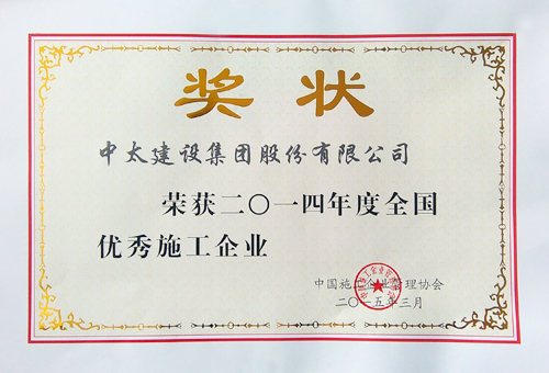 近日,由中國施工企業管理協會傳來喜訊,中太建設集團被評為“2014年度全國優秀施工企業”。