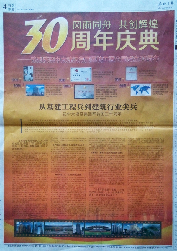 “三十年的積累與實(shí)踐,三十年的改革與創(chuàng)新,為中太建設(shè)集團(tuán)打造了一張中國建筑業(yè)名片。”
