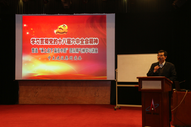 為學(xué)習(xí)宣傳貫徹黨的十八屆六中全會精神,結(jié)合集團公司當(dāng)前的實際情況,營造團結(jié)向上、執(zhí)行有力、務(wù)實高效的思想工作氛圍,集團公司黨委于2016年11月10日下午在中太大廈二樓報告廳舉辦了“學(xué)習(xí)貫徹黨的十八屆六中全會精神,營造承上啟下贏在中層團隊精氣神”的學(xué)習(xí)講座。