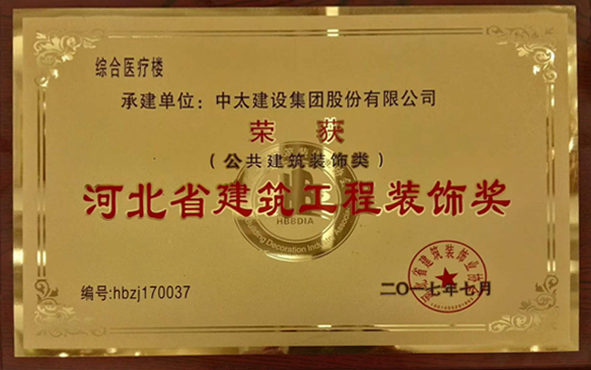 近日,由河北省建筑裝飾協(xié)會(huì)傳來(lái)喜訊,由中太建設(shè)集團(tuán)承建的中國(guó)石油天然氣集團(tuán)公司中心醫(yī)院綜合樓項(xiàng)目榮獲河北省建筑工程裝飾獎(jiǎng)。