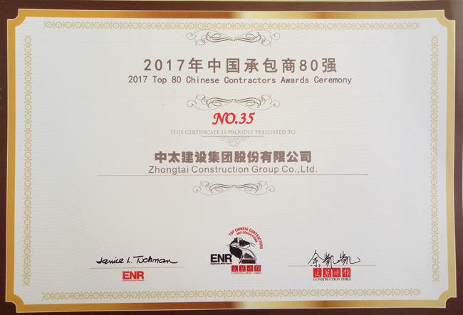 2017ENR/建筑時(shí)報(bào)“中國(guó)承包商80強(qiáng)和工程設(shè)計(jì)企業(yè)60強(qiáng)”榜單日前揭曉,中太建設(shè)集團(tuán)成功入圍“2017年中國(guó)承包商80強(qiáng)”榜單,排名第35名,這是中太建設(shè)集團(tuán)第8次入圍該榜單。