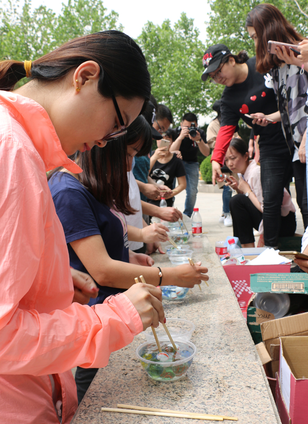 本次趣味運動會分為團(tuán)體賽和個人賽。團(tuán)體賽包含拔河、單足跳接力、風(fēng)采一條龍、坦克大戰(zhàn)和業(yè)績翻番五項比賽;個人賽包含踢毽子、跳繩、摸石頭過河、青蛙跳水和夾玻璃球五項比賽。參加團(tuán)體賽和個人賽的選手,均要按順序完成五項比賽,最終累加得分獲得比賽名次。經(jīng)過激烈的角逐,建設(shè)集團(tuán)第三代表隊榮獲團(tuán)體比賽第一名;建設(shè)集團(tuán)唐磊磊在個人競技賽中脫穎而出獲得冠軍,建設(shè)集團(tuán)黃雪獲得第二名,房產(chǎn)集團(tuán)張倩倩、建設(shè)集團(tuán)張超并列第三名。