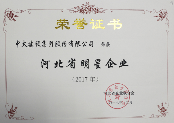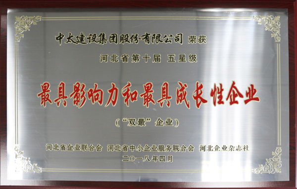 近日,河北省企業(yè)聯(lián)合會第六屆會員代表大會第二次會議暨2018年河北省企業(yè)管理創(chuàng)新大會在石家莊召開,會議通報《河北省第十屆“最具影響力”“最具成長性”“最受關(guān)注企業(yè)家”評審結(jié)果》。中太建設(shè)集團獲評五星級“最具影響力和最具成長性企業(yè)”(“雙最”企業(yè))、“河北省明星企業(yè)”,李文健同志被授予“最受關(guān)注企業(yè)家”、“河北省優(yōu)秀企業(yè)家”稱號。