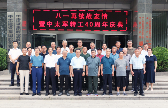 今年8月1日,是中國(guó)人民解放軍建軍98周年紀(jì)念日,在這個(gè)特殊的日子里,我們又迎來(lái)了原中國(guó)人民解放軍基建工程兵三十六支隊(duì)第352團(tuán)集體轉(zhuǎn)業(yè)40周年慶典。歡聚在我們親手建造的中太大廈,隆重慶祝中太建設(shè)集團(tuán)軍轉(zhuǎn)工40周年。會(huì)上,集團(tuán)黨委領(lǐng)導(dǎo)向?yàn)橹刑ㄔO(shè)集團(tuán)的發(fā)展做出卓越貢獻(xiàn)的老領(lǐng)導(dǎo)、老戰(zhàn)友、老同志和集團(tuán)公司全體員工致以誠(chéng)摯的問(wèn)候和崇高的敬意!