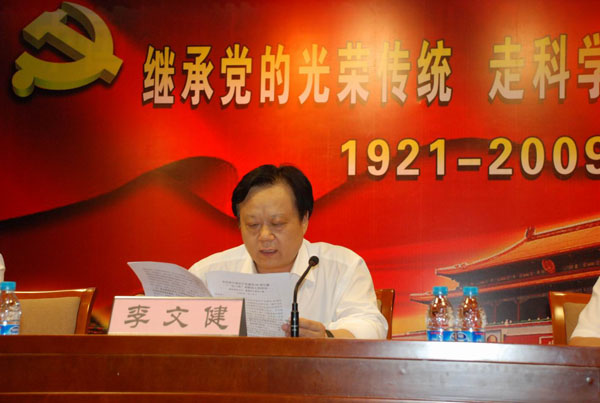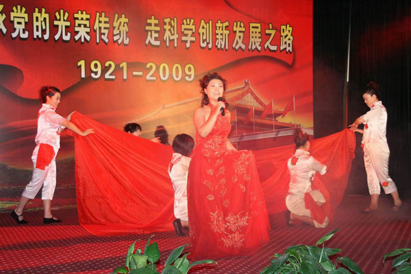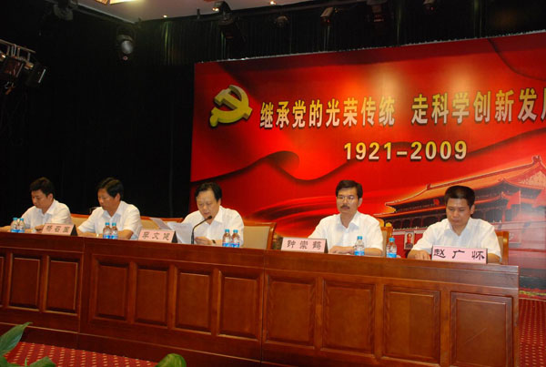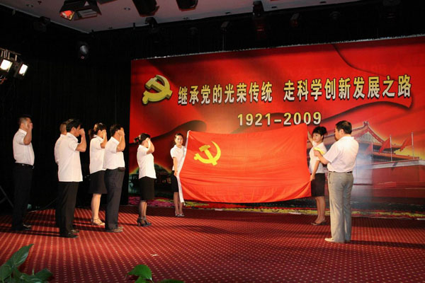 黨委副書記鐘崇鶴宣讀了2008年度“一先三優(yōu)”表彰決定。然后,李文健、鐘崇鶴、楊召國、趙廣懷、梅興元分別為受表彰單位和個人頒獎。李春陽等6名新黨員面對黨旗,舉行了新黨員入黨宣誓。總部、各集團(板塊)機關(guān)全體黨員及所屬各黨支部班子成員、部分黨員、管理人員200多人參加了表彰大會。會議采取以演唱歌頌黨的革命歌曲為主要內(nèi)容、邊頒獎邊演出文藝節(jié)目的形式,將大會推向了一個高潮,受到了大家的歡迎和贊揚。