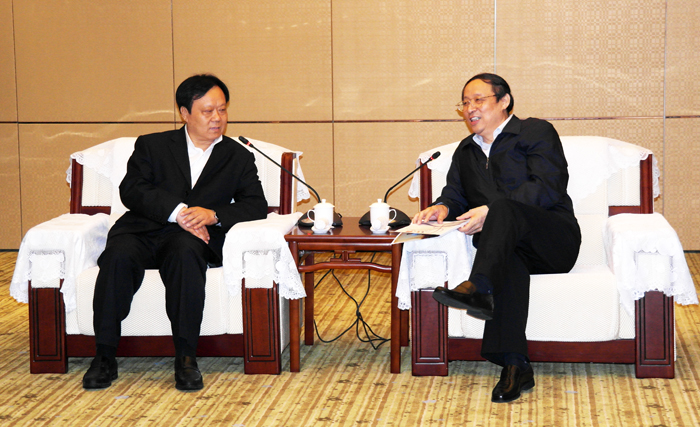 安徽省省長(zhǎng)王學(xué)軍(右)親切接見(jiàn)中太建設(shè)集團(tuán)董事局主席李文健