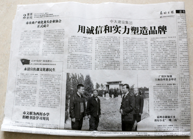 廊坊日報報道了中太建設集團用誠信和實力塑造品牌