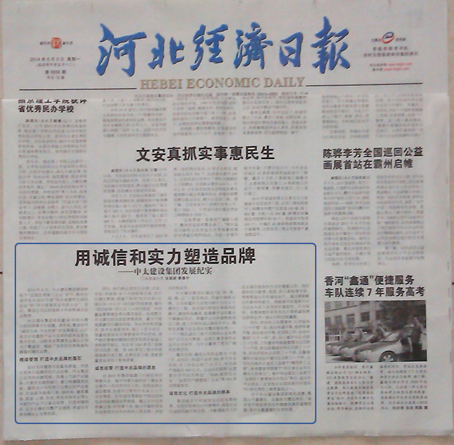 河北經(jīng)濟(jì)日?qǐng)?bào)報(bào)道了中太建設(shè)集團(tuán)用誠信和實(shí)力塑造品牌