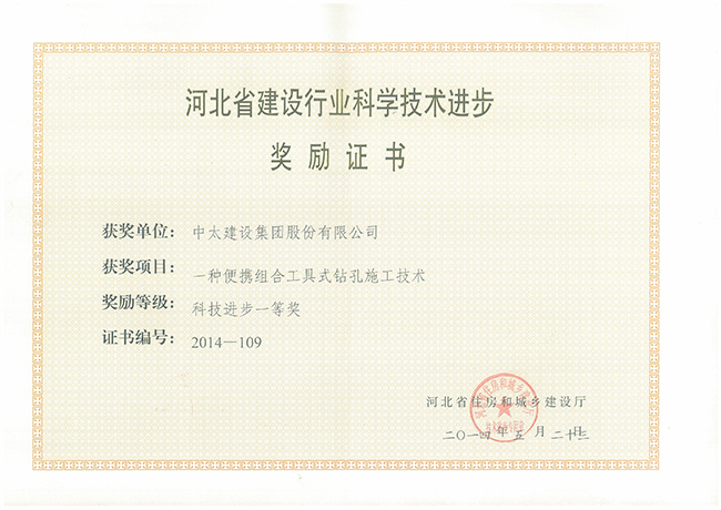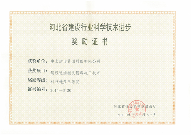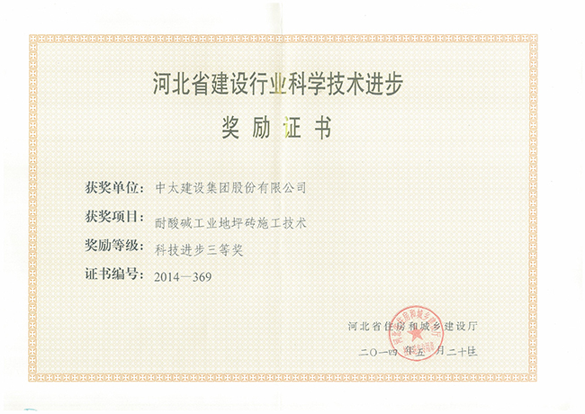 2014年河北省建設行業科學技術進步獎勵證書匯總