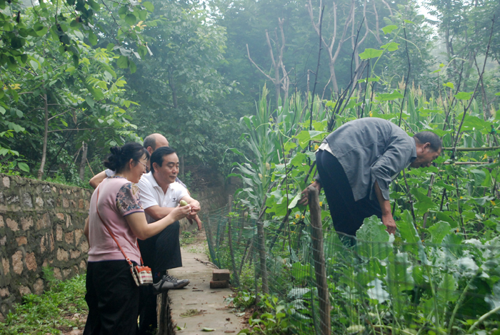 據第八工程局工作人員介紹,此采摘處約有20畝果樹林地。山上種植著杏兒、桃兒和核桃。山下院內菜園里,種植著施用農家肥的各類時蔬和植物。以蟲兒、草兒為食、自由散養的雞鴨悠閑漫步在山林中,好一派恬靜如詩、優美如畫的田園風光。