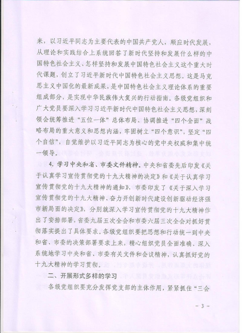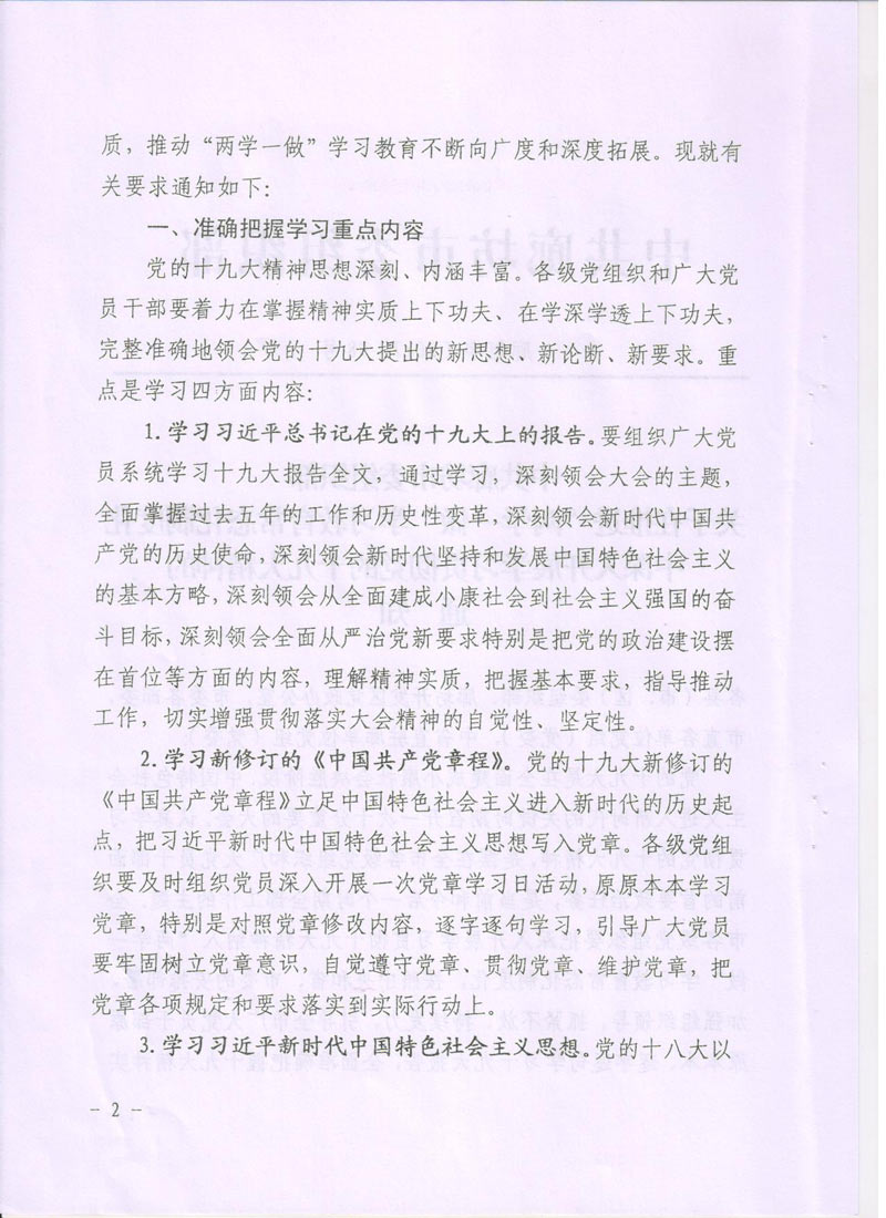 現將中共廊坊市委組織部《關于在推進“兩學一做”學習教育常態化制度化中深入開展學習貫徹黨的十九大精神的通知》轉發給你們。請認真按照通知要求,緊密聯系本單位實際,把深入開展學習貫徹十九大精神納入“兩學一做”學習教育常態化制度化,把十九大精神學深學透,全面把握十九大精神實質。